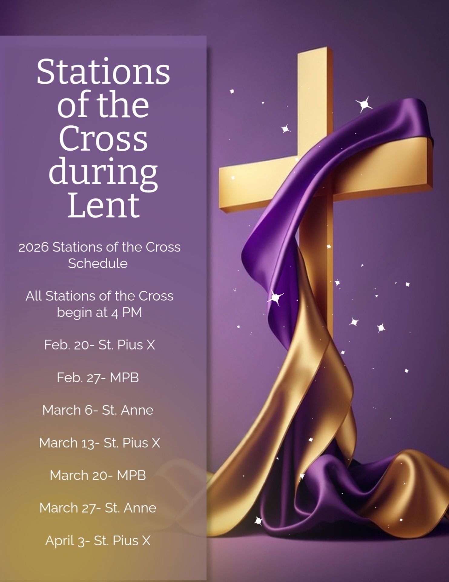 - Fridays- After Stations of the Cross (see the schedule by clicking on the Lent 2024 link under the Liturgy tab)