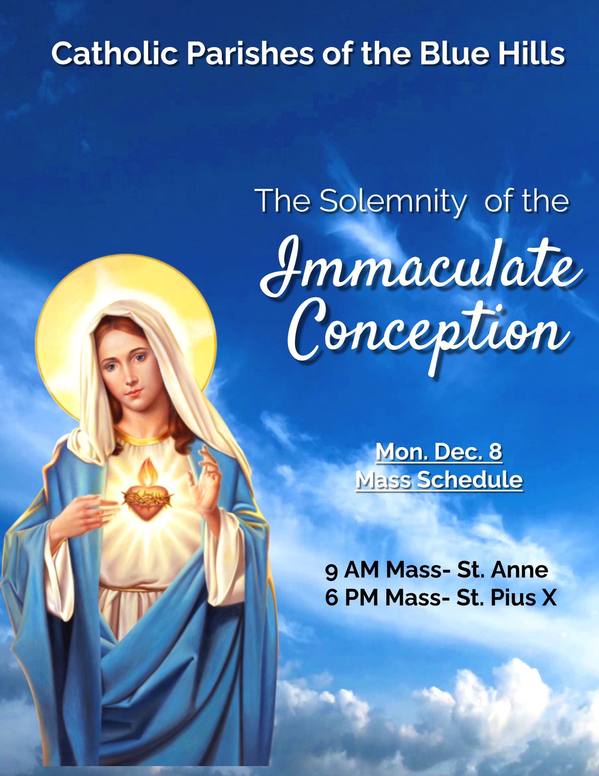 Solemnity of the Immaculate Conception of the Virgin Mary Mass Schedule- Mon. Dec. 8